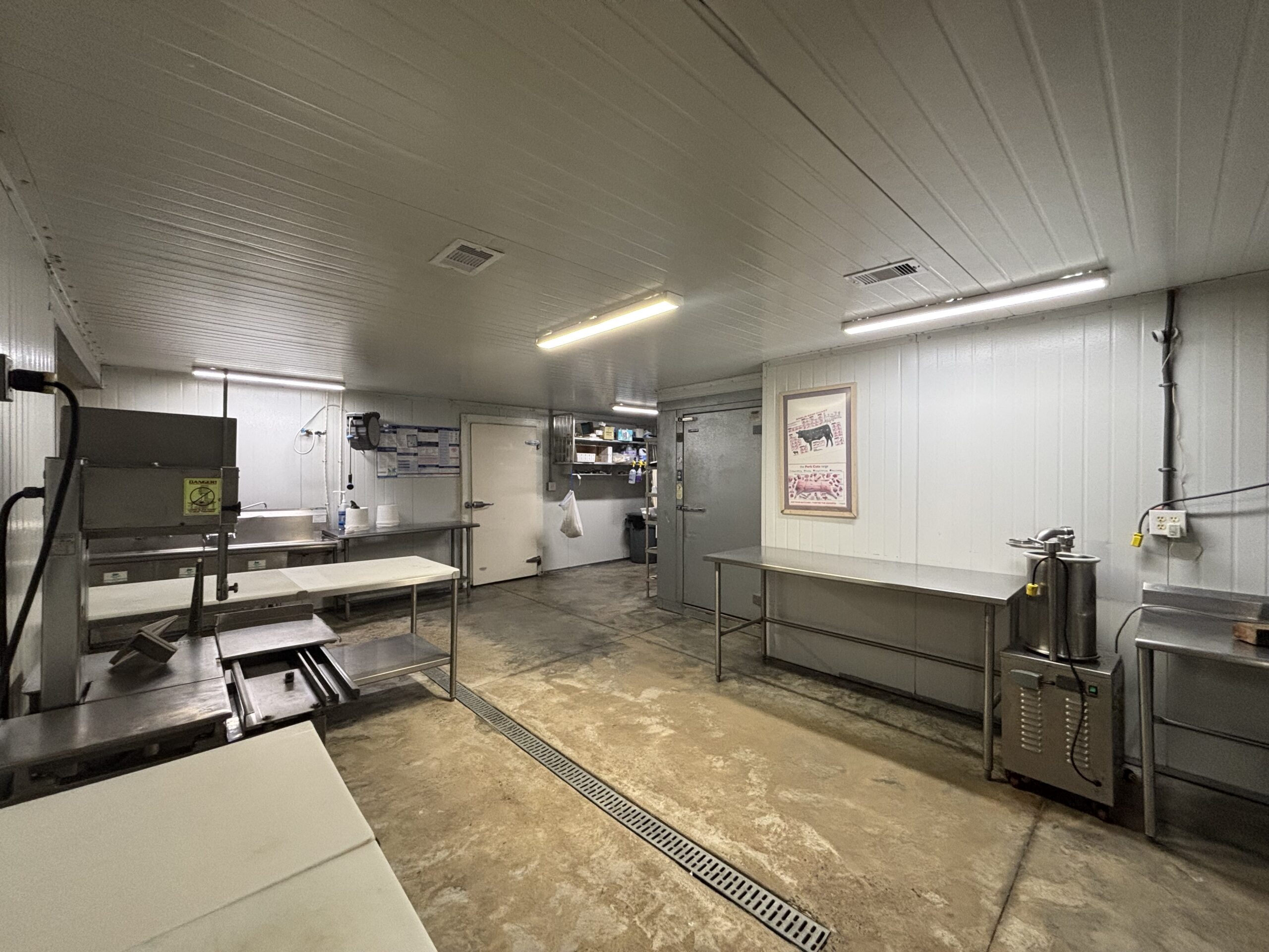 The building is 2500 sq ft downstairs that is occupied by the specialty meat shop, retail area, full kitchen, and walk in freezers. Upstairs is 1200 sq ft that is a finished apartment. Currently rented for $1600/month.